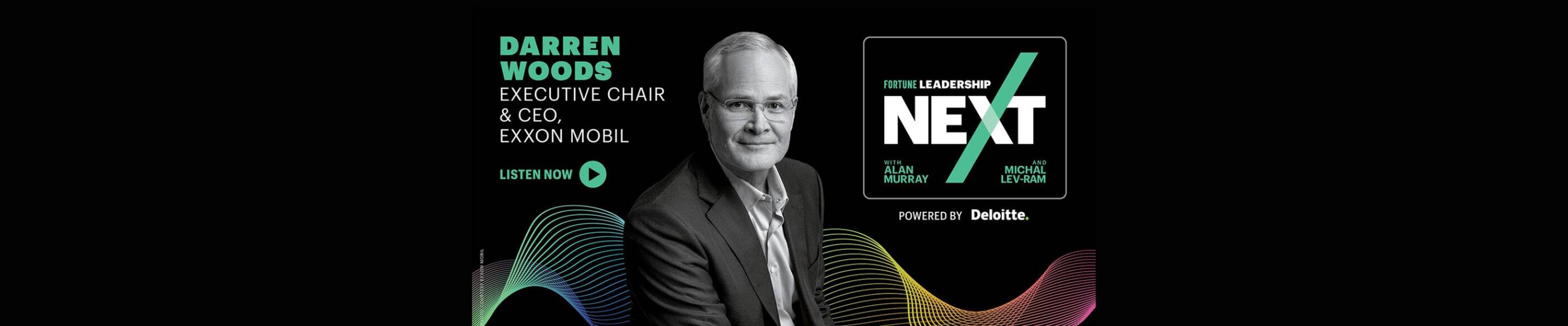 CEO Darren Woods joins Fortune’s Leadership Next podcast to discuss the challenges and solutions of navigating a leading Fortune 500 company through the energy transition.